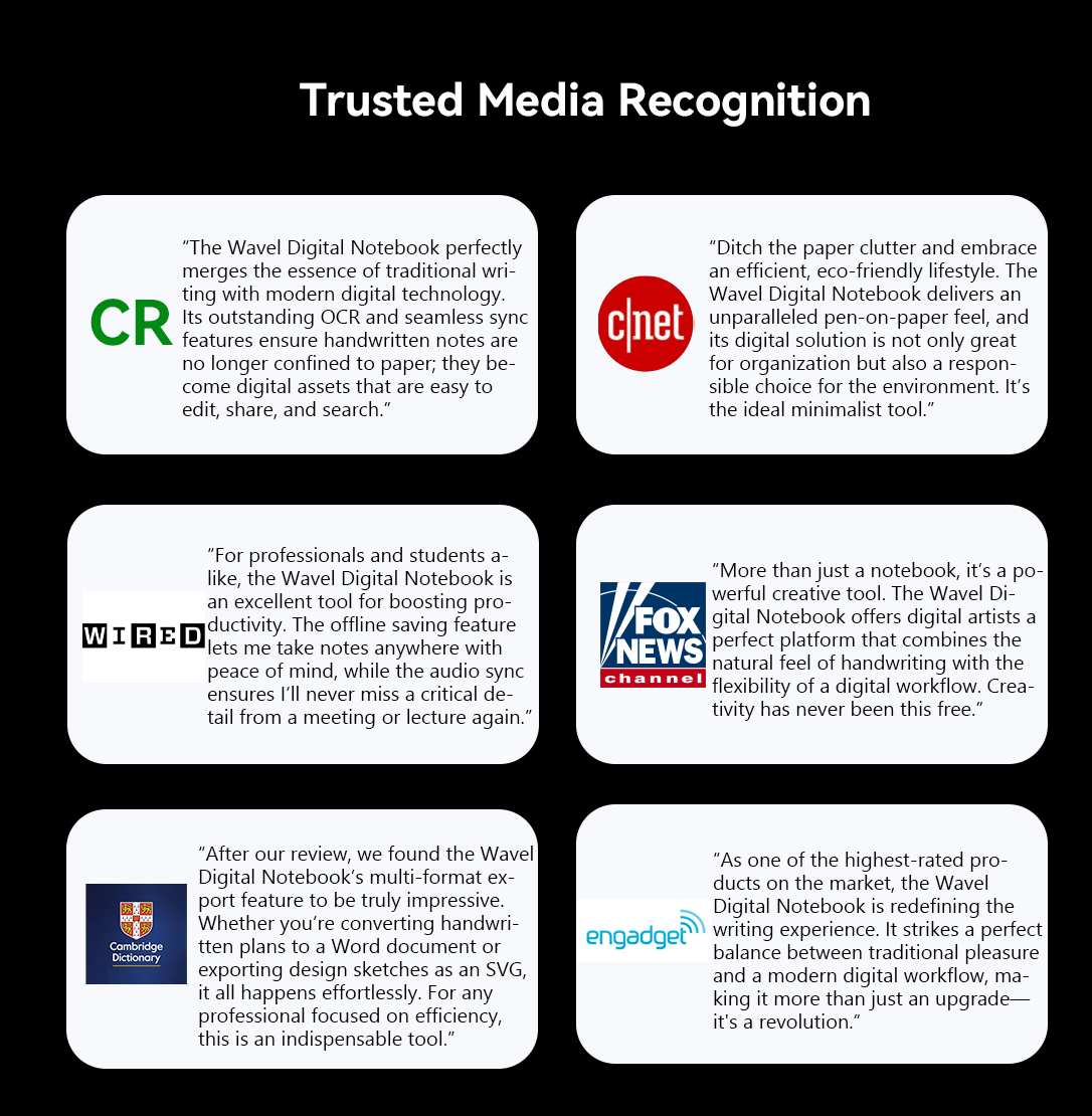 The Wavel Digital Notebook's high-precision recognition technology flawlessly converts your handwritten notes—even cursive or a scribbled signature—into digital text. Every single word you write is accurately captured and saved, allowing you to focus on your thoughts without worrying about recognition problems.