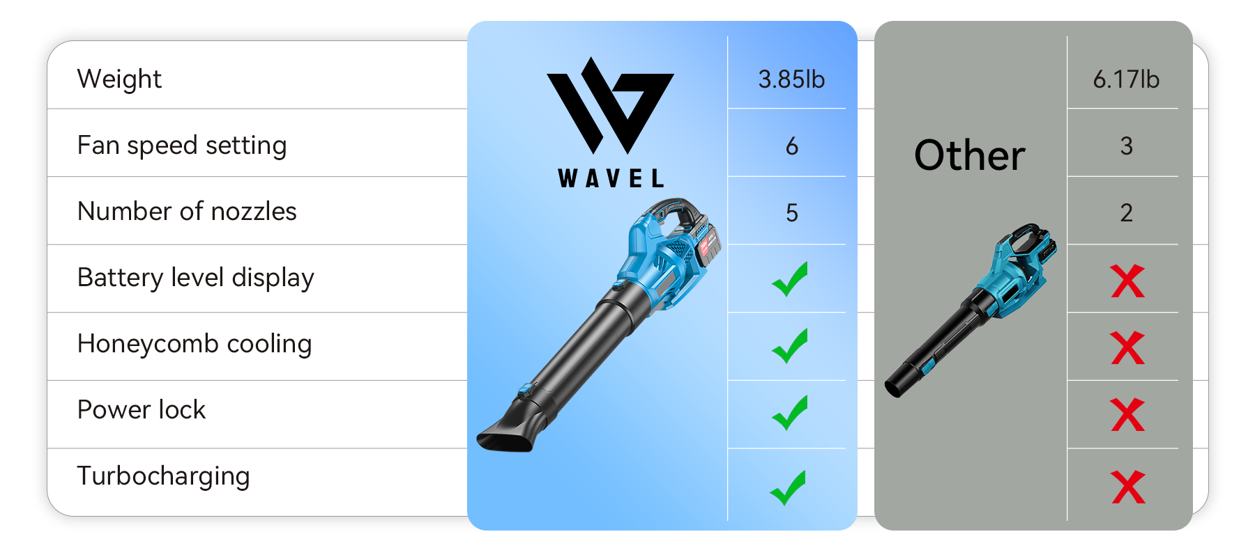 That’s how the Wavel Cordless Electric Leaf Blower was born. Powerful yet lightweight, it makes cleaning fast and easy, leaving your yard spotless. Wavel’s promise is simple: turn chores into enjoyment and give you back your valuable time and energy.